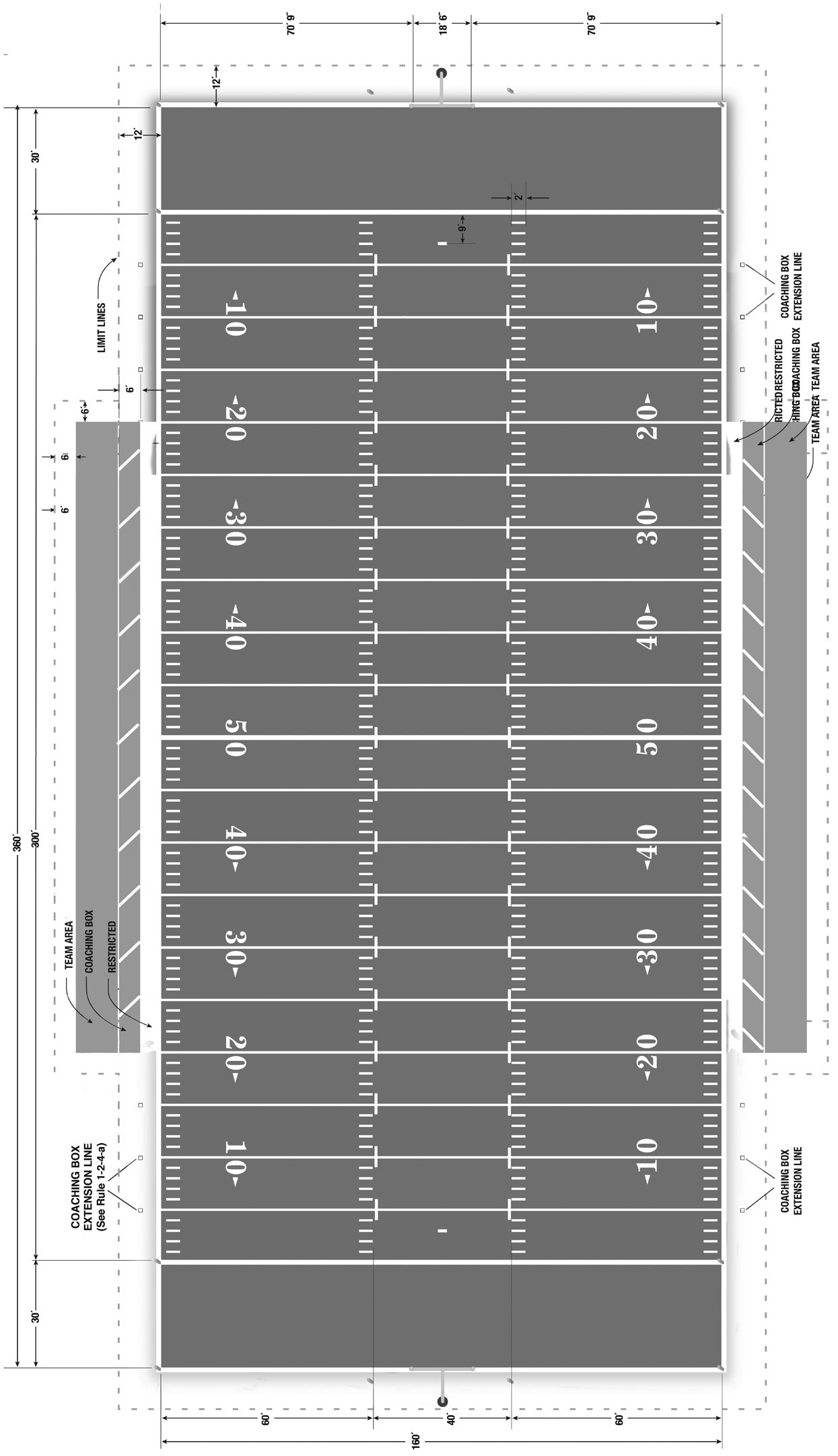 (except for the length of the 2ft short yard-line extensions and the