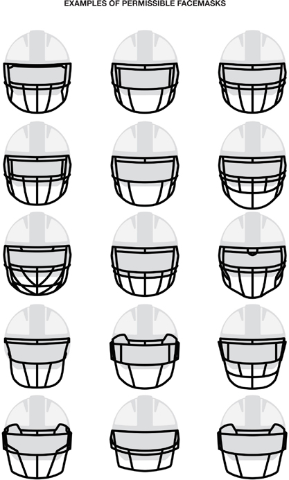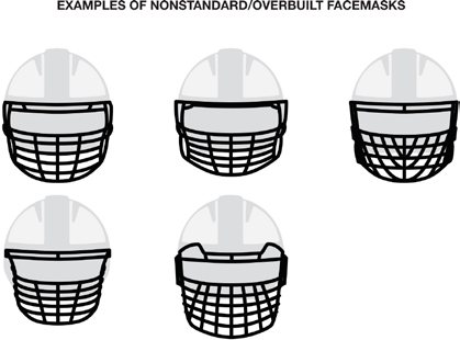 As a general principle, any facemask with five or more horizontal bars below the eyes is not permissible. The exception is the facemask below - because of the larger gap between bars 2 and 3 and between 4 and 5, it is permissible.